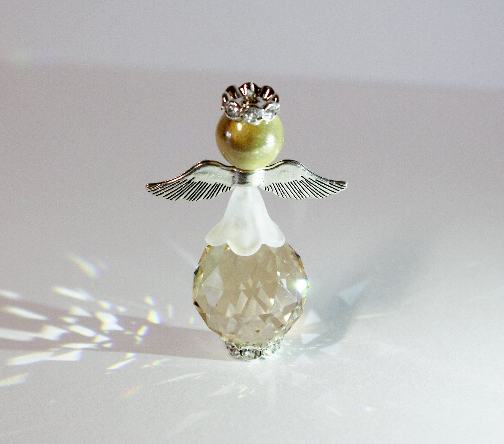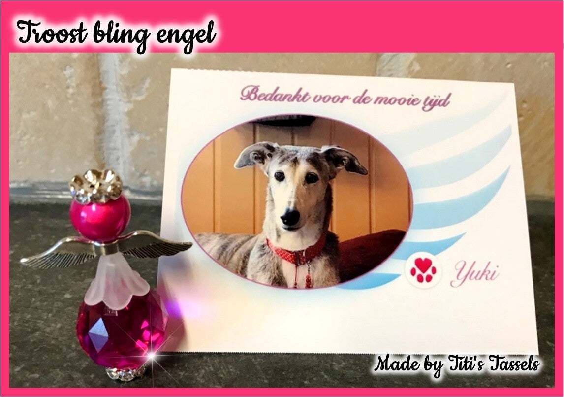 Onze handgemaakte bling engel is een echte lichtvanger, die dikwijls als troost-engeltje naast een foto wordt gezet, waar ze prachtig glinsteren wanneer ze een streepje zon kunnen vangen.