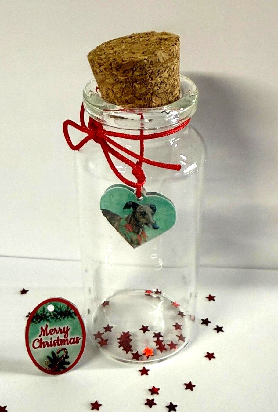 Het flesje is afgesloten met een natuurlijke kurk en afgewerkt met een fijn koordje en wordt volledig gepersonaliseerd met foto, bedel, naam, sterretjes, floating charm, of hoe dat jij het wil. Dankzij het compacte formaat, flesje is 7cm hoog, is het een mooi en discreet aandenken dat je een bijzonder plekje kunt geven in huis.