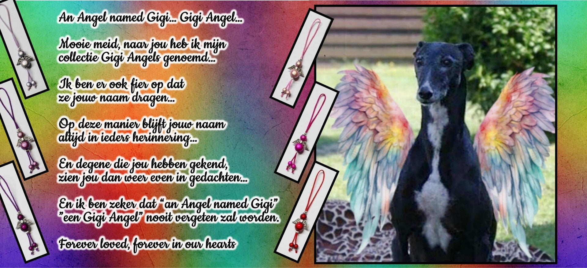 In 2010 ontwierp ik de allereerste Gigi Angel voor een bijzondere Galgo genaamd Gitana, liefkozend Gigi genoemd. Toen Gigi plots ziek werd, wilde ik haar iets meegeven, een klein engeltje vol warmte en geluk. Zo ontstond de eerste Gigi Angel.